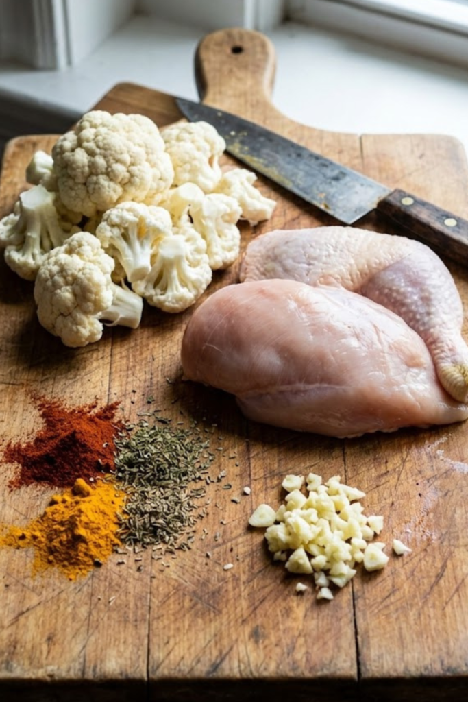 Gathering Your Ingredients for Keto Chicken and Cauliflower Rice Pilaf