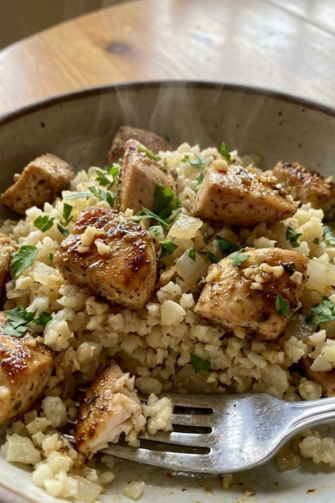 This Keto chicken and cauliflower rice pilaf is seriously a game changer for easy weeknight meals. It fills you up, tastes amazing, and keeps you right on track with your goals.