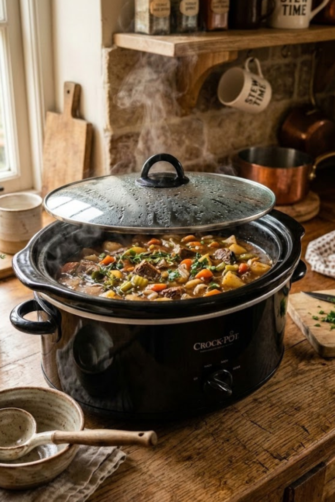 My favorite way is to use a tiny pinch of xanthan gum. You just whisk a little bit—like half a teaspoon—into some cold water first, then stir that slurry right into the hot broth during the last hour of cooking. It thickens it up perfectly! If you don’t have xanthan gum in the cupboards, you can also just take the lid off the slow cooker for the last 45 minutes. The extra steam escapes and the liquid cooks down and thickens naturally.
