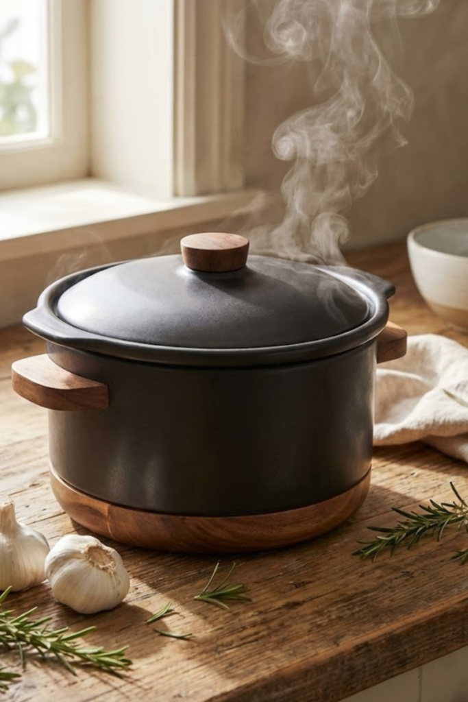 Take the insert out of the heating base right away so the meat doesn’t continue cooking and get chalky. Let the meat rest on a wooden cutting board for about ten full minutes before you start slicing. Resting keeps all those delicious, buttery juices inside the pork instead of running all over your counter.