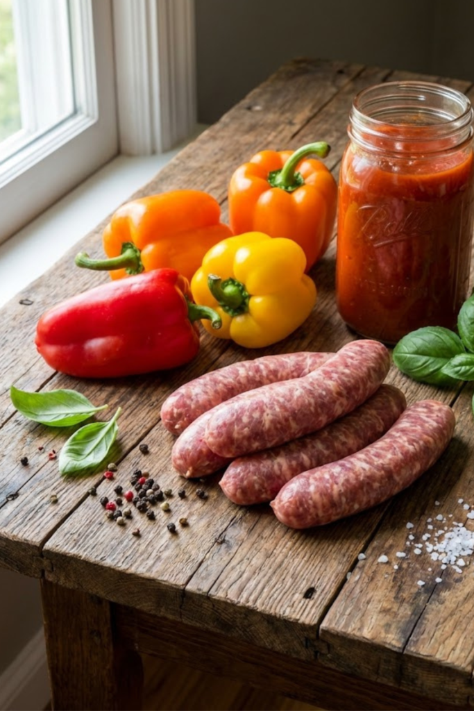 I used to just dump everything in the pot randomly, but I learned the hard way that the order actually matters a little bit. If you put the sausages on the very bottom, they can get a little burnt or stuck to the crock. So, here is what I do now: I make a bed of onions and peppers first. It acts like a little rack for the meat to sit on. Plus, as the veggies cook down, they release this amazing liquid that steams the sausage from below, keeping everything moist.